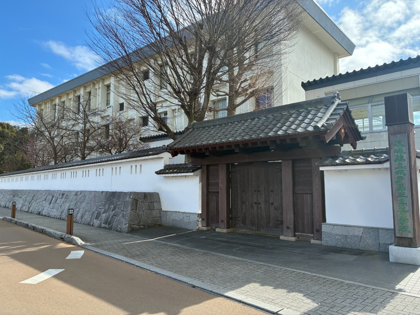 続く水戸城跡も同様に歩いてみる。学校の壁が城壁のようになっていたりする風景は、どこか土浦の亀城周辺に似た雰囲気を感じさせた。