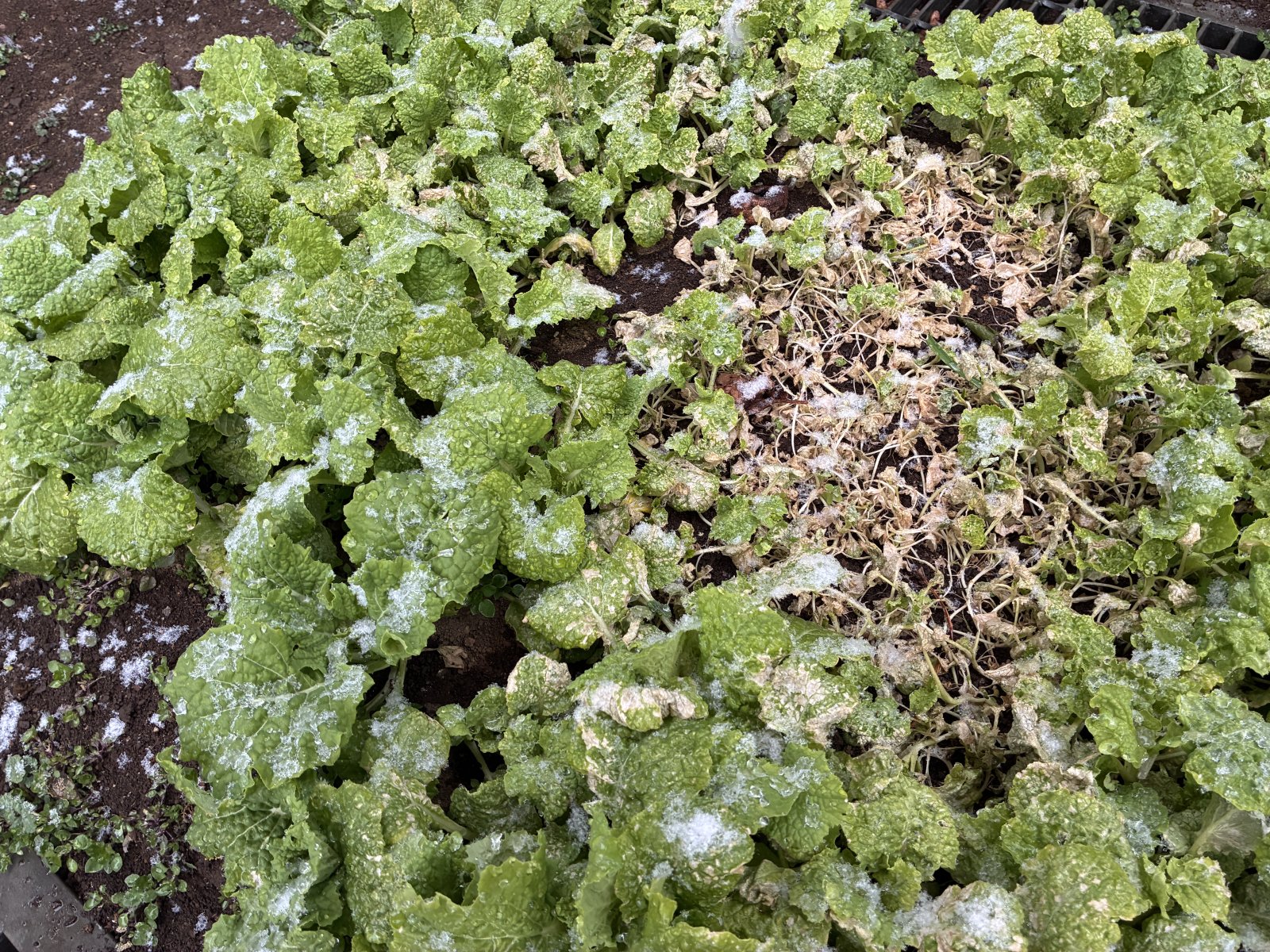 ダメージ葉を取った区画と放置区画で比較すると、データになる。